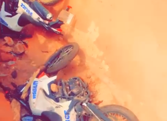 Les habitants, mécontents de l'intervention de la police, leur ont lancé des pierres et détruit leurs motos.